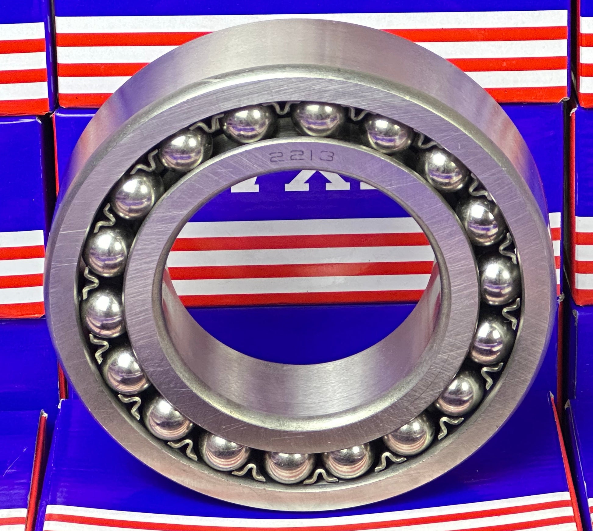 Le roulement à billes auto-aligneur 2213 possède une piste sphérique sur la bague extérieure, les billes et la cage continuent de tourner. Ce type de roulement est adapté lorsque des déplacements des centres autour desquels l'arbre et le logement tournent ainsi que des déformations de l'arbre sont susceptibles de se produire. Fabriqué en acier allié durable 52100, communément appelé acier au chrome.