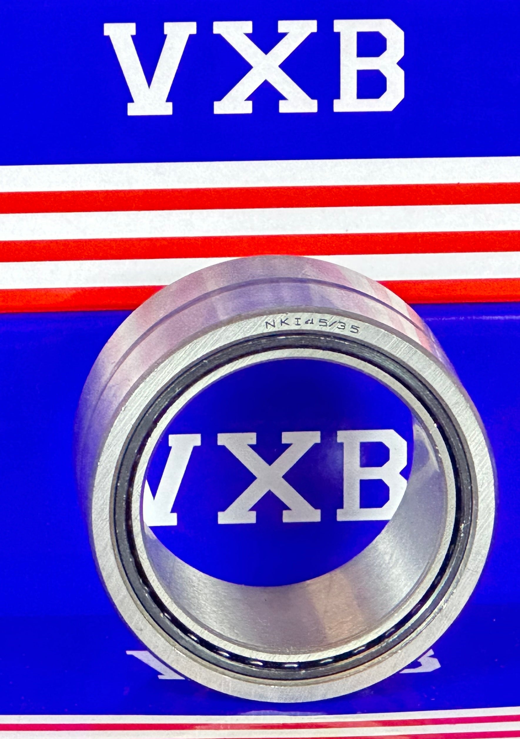 Obrobione łożysko igiełkowe typu NKI45/35, średnica wewnętrzna NKI45/35 wynosi 45mm, średnica zewnętrzna 62mm, szerokość 35mm.