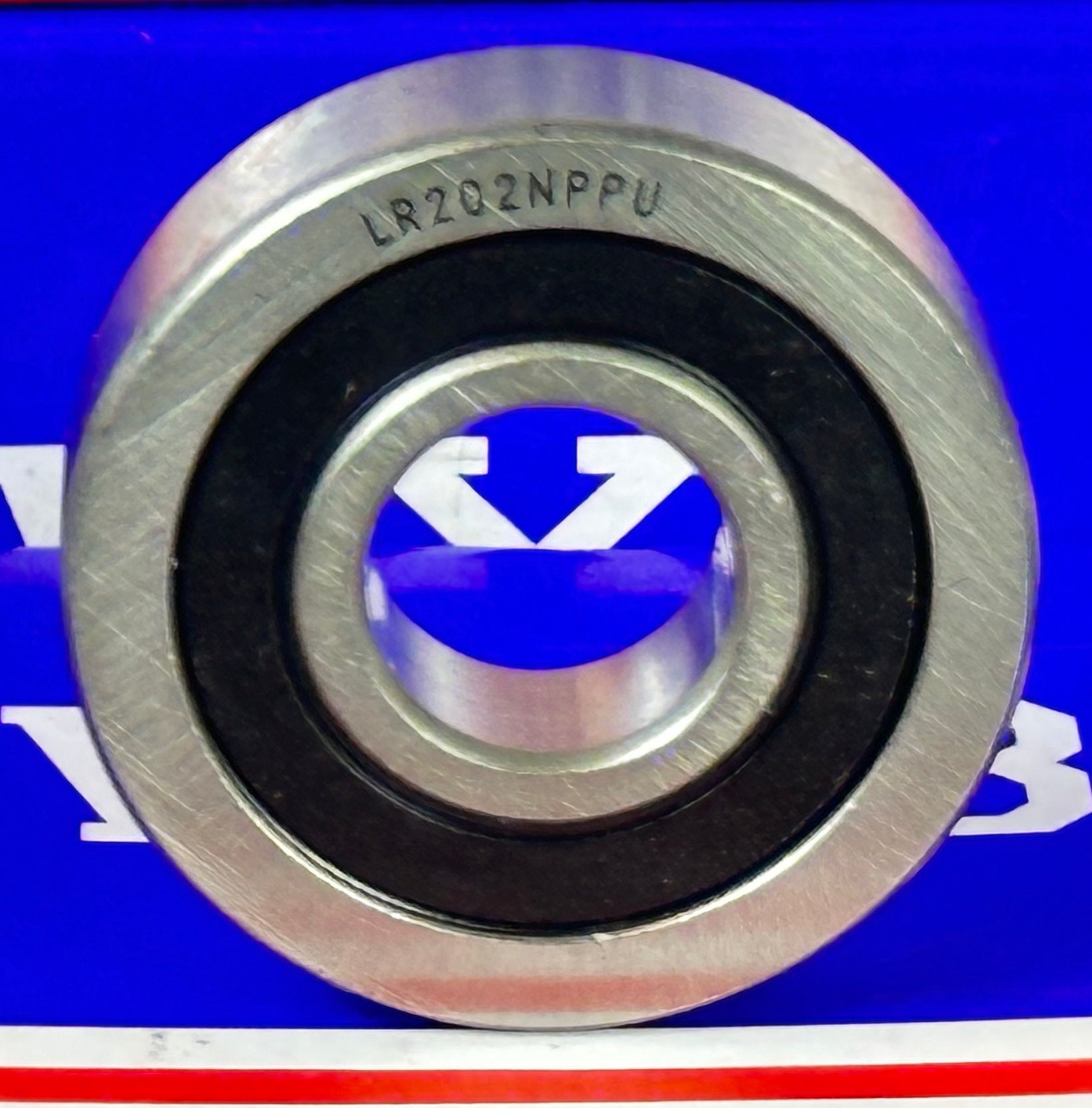 The LR202NPPU is a single-row track roller bearing built to run smoothly along rails, cams, and linear tracks. With a 15mm bore and rugged sealing, it's ideal for use in conveyor systems, automation setups, and machinery that requires guided linear motion with low friction.