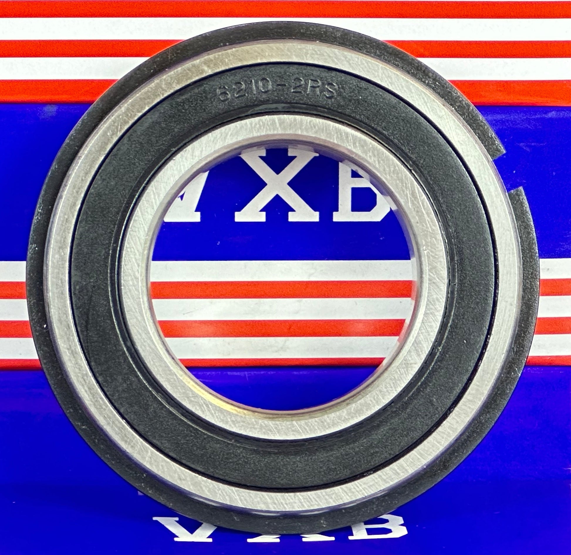 ตลับลูกปืน 6210-2RSNR พร้อมแหวนล็อค เส้นผ่านศูนย์กลางด้านใน 50 มม. เส้นผ่านศูนย์กลางด้านนอก 90 มม. และความกว้าง 20 มม. ตลับลูกปืนนี้มาพร้อมกับซีลยางสองชั้นเพื่อป้องกันฝุ่นและสิ่งสกปรก นอกจากนี้ยังมีการหล่อลื่นล่วงหน้าด้วยจาระบี ทำให้พร้อมใช้งานทันที
